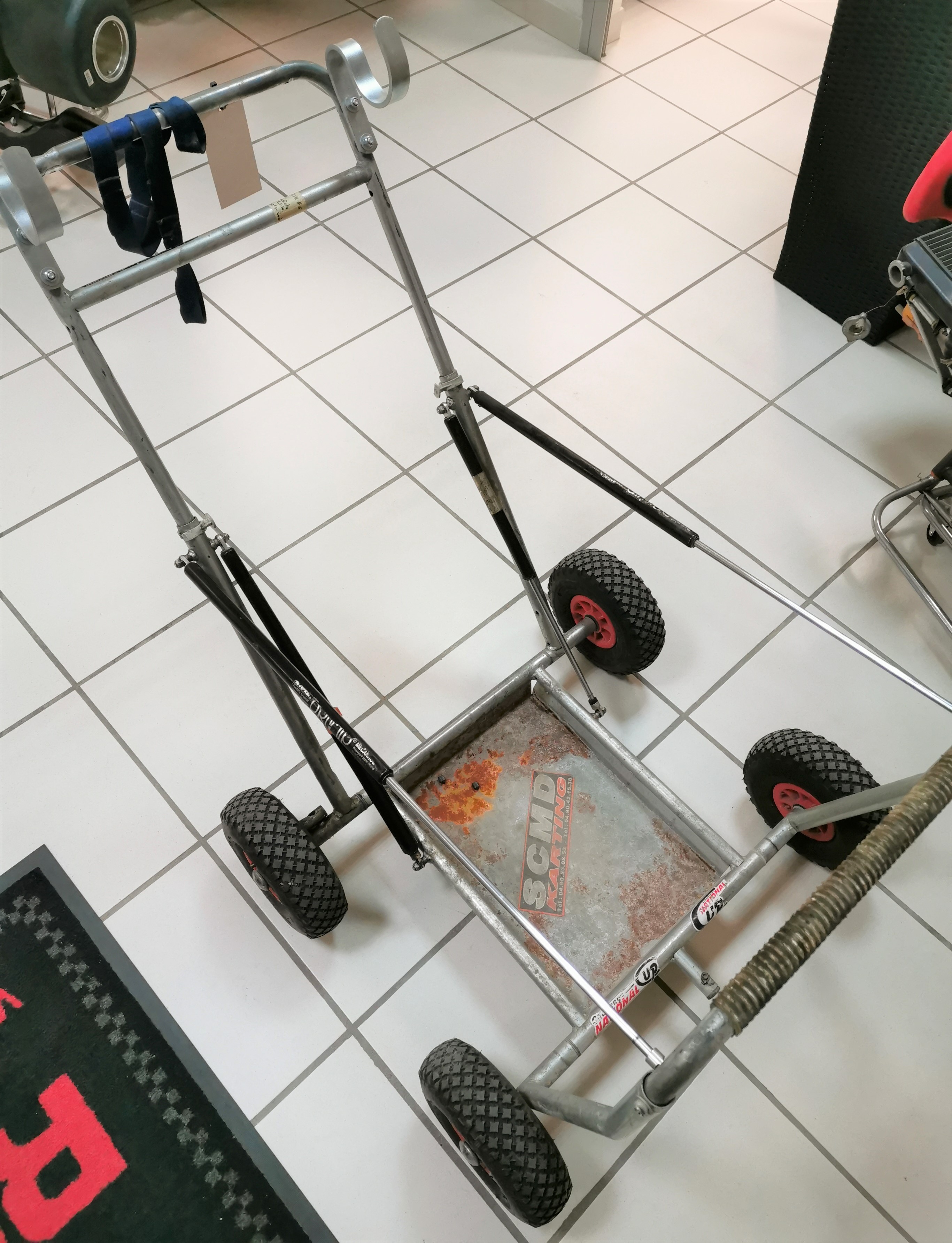 Notre magasin SEB POWER KARTING sur Grans vous propose à la vente un Chariot porte kart OTK chromé avec roues pleines d’occasion, vendu 260 euros ttc.