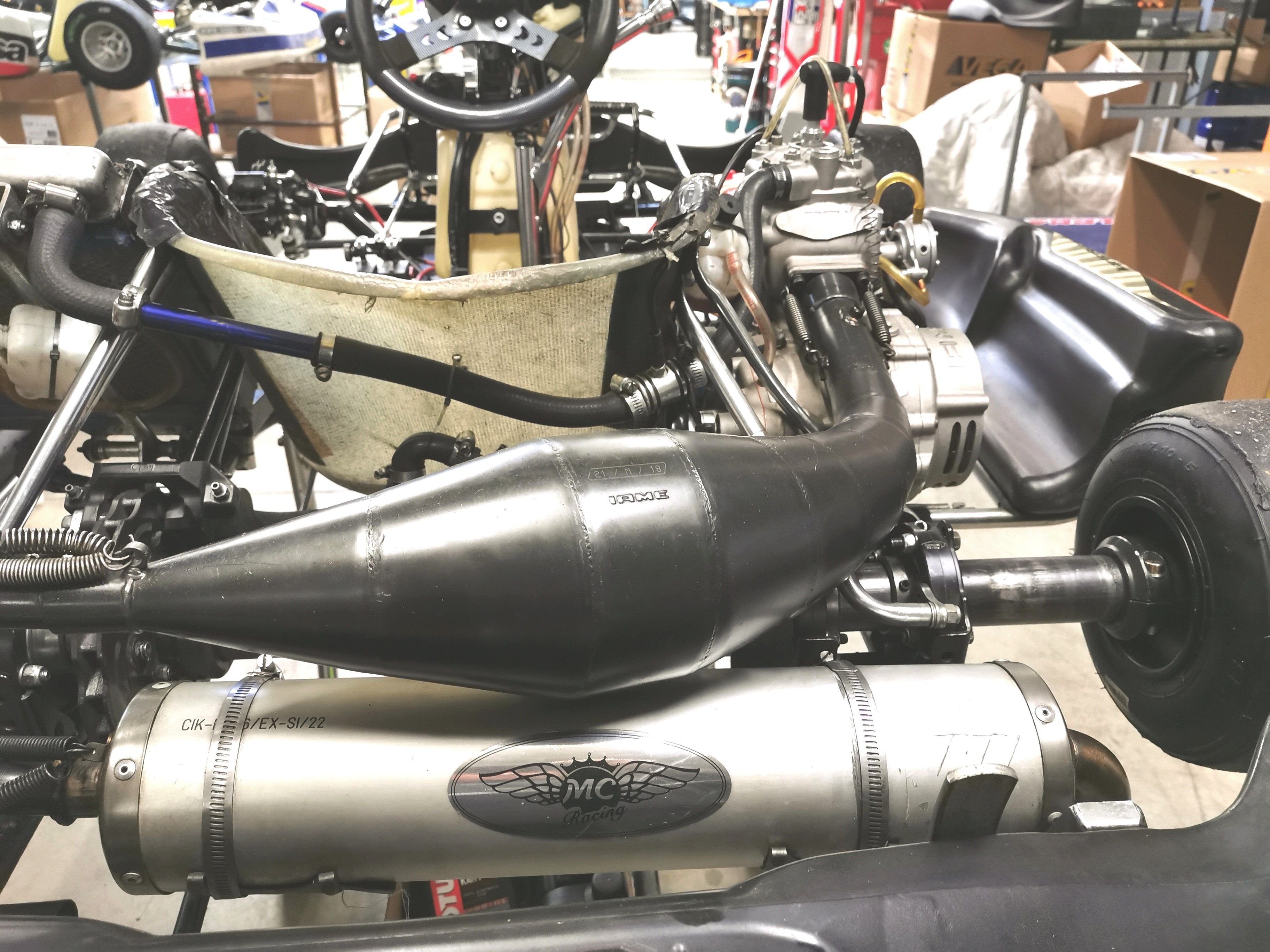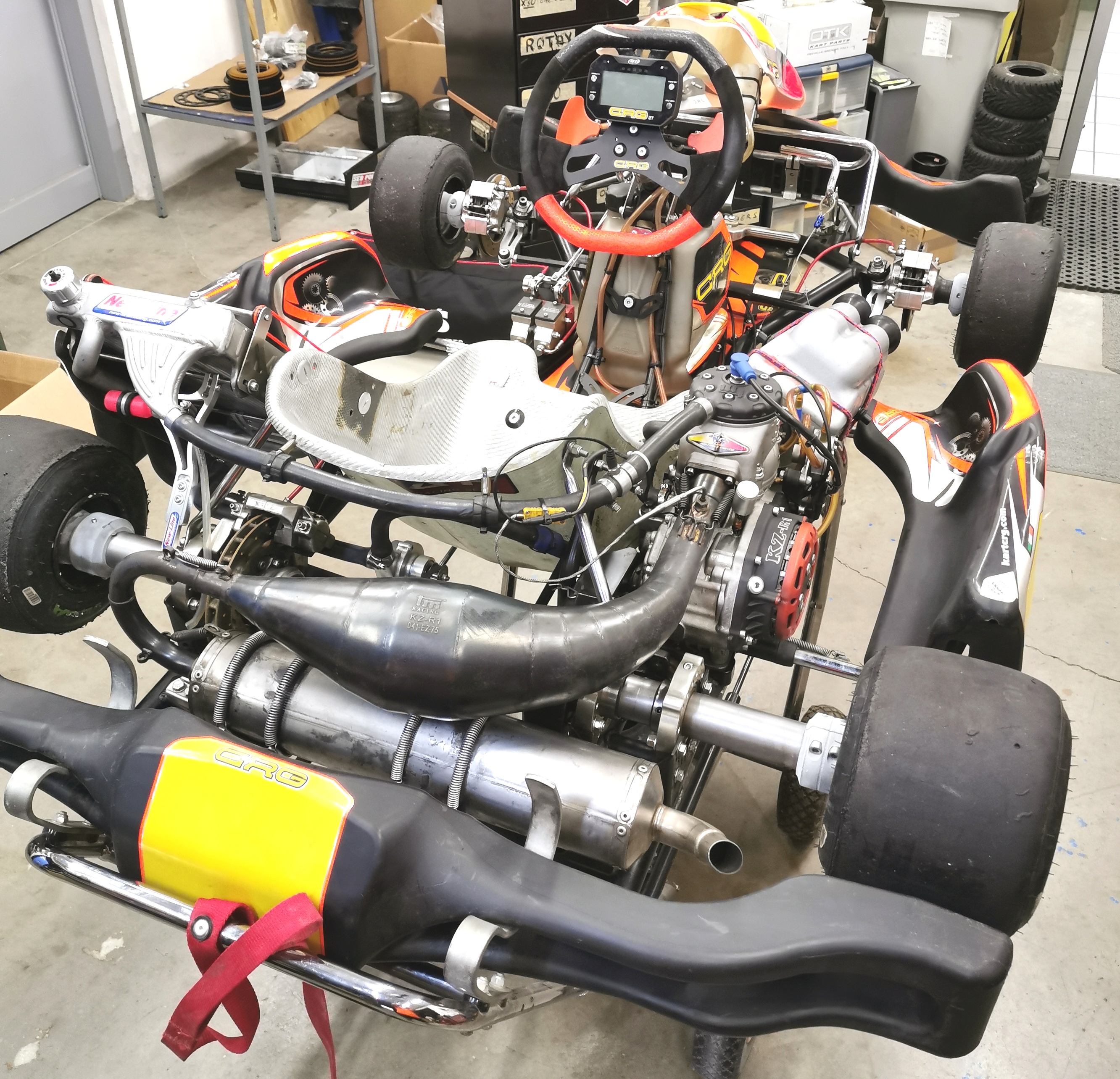 batterie, chaîne, joints carbu, coupe-circuit, siège, spoiler AR Tri, silencieux additionnel IAME.